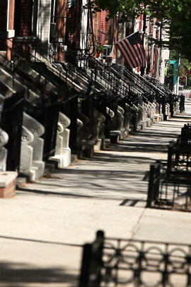 The grandness of New York City’s stoops, and stoop culture is captured in THE STOOP as generations of New Yorkers speak of the rich heritage of sitting out on one’s stoop. This uniquely New York culture of stoop sitting has been memorialized in photographs of the ‘old neighborhoods’ where children can be seen playing at open hydrants as grandmothers stand next to baby carriages keeping an eye on the street. Men stand on the top step of the stoop with a cigar between their lips, a newspaper in their hand, intermittently surveying their block. The value of a self-policing and eyes on the street has never waned and still gives a neighborhood ‘good bones’ today. Twenty-first century urban studies would have people believe that small towns and suburban areas are